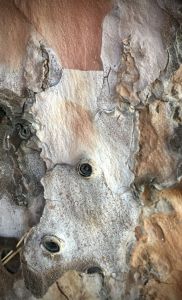My neighborhood is alive with mature Ficus canker, Chinese elm, magnolia, melaleuca, jacaranda, eucalyptus, various oaks & palms, & others I’ve yet to identify. After a couple of years of admiring the crowns of these beauties during daily walks with my dog, I began looking down at the nooks & crannies of the roots & trunks. There I discovered all sorts of faces & critters. I felt compelled to photograph them. first with my Apple iPhone 5Se, and later with my iPhone12.
